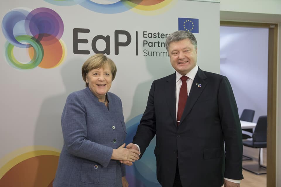Президент Петр Порошенко встретился с канцлером Германии Ангелой Меркель в рамках пятого саммита "Восточного партнерства", который объединяет Евросоюз с шестью бывшими республиками СССР - Беларусью, Украиной, Молдавией, Грузией, Арменией и Азербайджаном. Об этом написал пресс-секретарь президента Святослав Цеголко в соцсети Facebook.