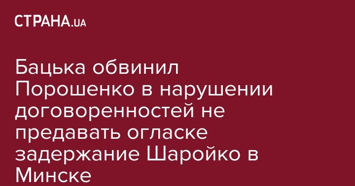 Бацька обвинил Порошенко в нарушении договоренностей не предавать огласке задержание Шаройко в Минске