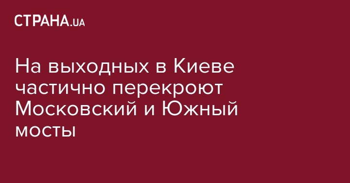 В выходные ограничат движение транспорта по Московским и Южным мостам из-за ремонтных работ. Об этом сообщает пресс-служба КГГА.