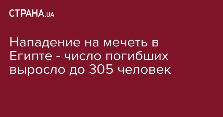 Количество погибших в результате нападения на мечеть на севере Синайского полуострова в Египте выросло до 305 человек.