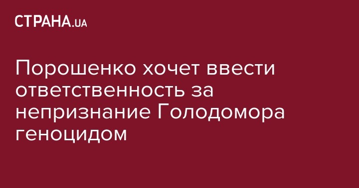 Президент Петр Порошенко заявил, что в Украине следует ввести ответственность за непризнание Голодомора геноцидом. Об этом он сказал во время выступления у Мемориала жертв Голодомора.