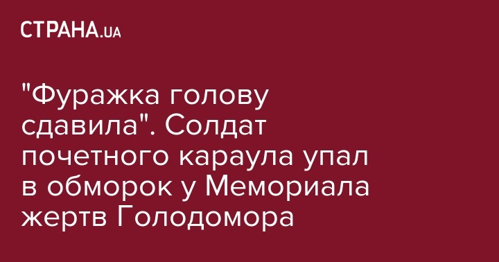 "Фуражка голову сдавила". Солдат почетного караула упал в обморок у Мемориала жертв Голодомора