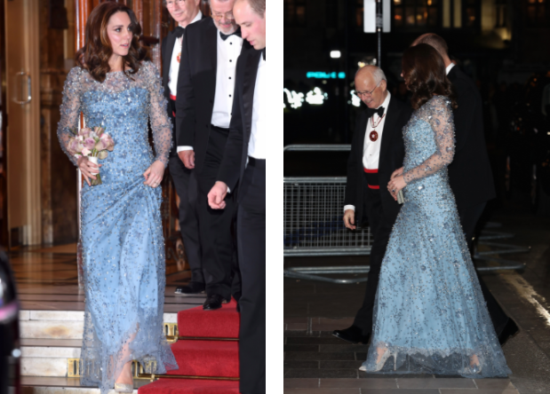 Беременная третьим ребенком герцогиня Кембриджская Кейт Миддлтон появилась на публике в блестящем платье расшитом "ледяными" стразами и пайетками из осенней коллекции британского дизайнера Дженни Пэкхем. Об этом сообщает Elle.ru.