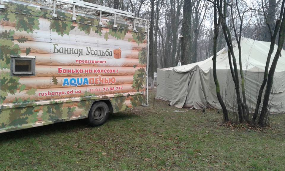 Михомайдановцы подвезли баньку на колесах в Мариинский парк. Фото