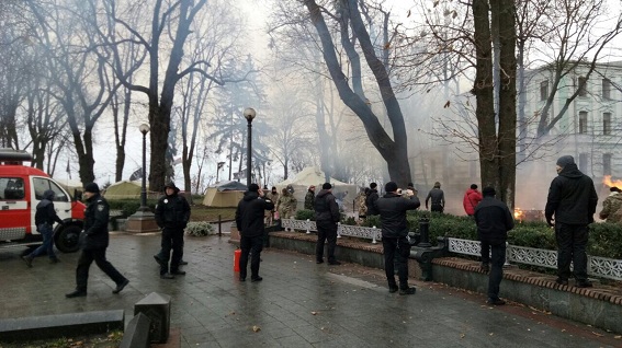 "В 9:40 правоохранители заметили задымление в палаточном городке возле Верховной Рады Украины. И полицейские, и спасатели, которые находились на дежурстве, сразу бросились туда, а затем потушили палатку, которая горела", - говорится в сообщении.