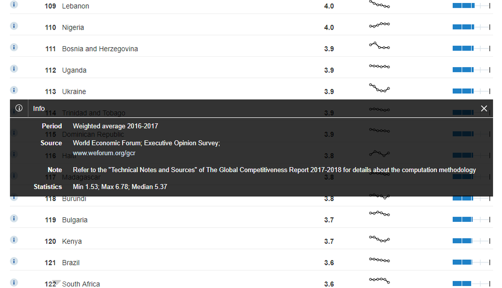 Стоит отметить, что позиции Украины оказались хуже всех бывших республик СССР. Так, Таджикистан в рейтинге занимает 61 место, Армения - 62, Казахстан - 63-е. Грузия еще выше: 37-е, а Эстония на 10-м месте.