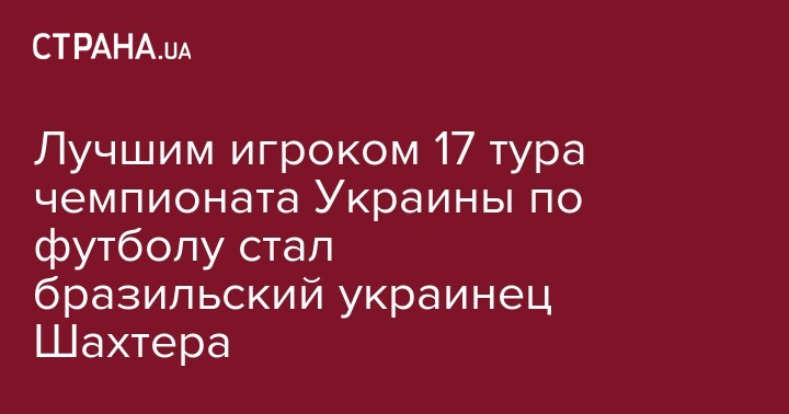 После завершения матчей 17 тура чемпионата Украины по футболу, Украинская Премьер-Лига, традиционно назвала лучшего игрока тура. В этот раз им стал гражданин Украины бразильского происхождения, полузащитник "Шахтера" - Марлос.