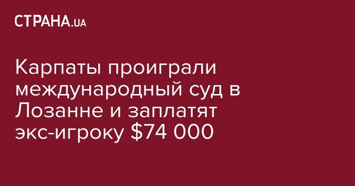 Львовские Карпаты проиграли процесс в Международном спортивном суде Лозанны (CAS) по делу своего бывшего игрока Владимира Гудымы и должны выплатить ему компенсацию в размере $74 000.