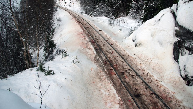 Очевидцы назвали произошедшее "кровавой бойней", так как несколько километров припорошенного снегом железнодорожного полотна забрызгано кровью.