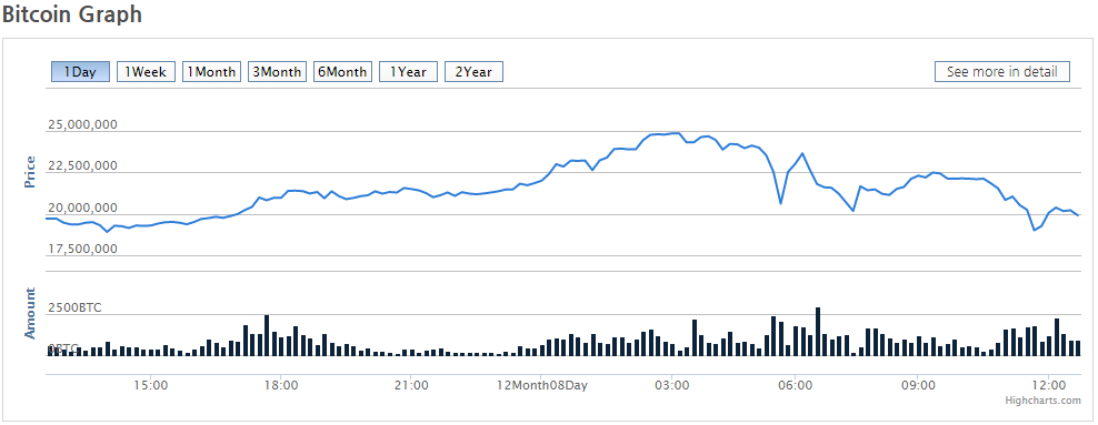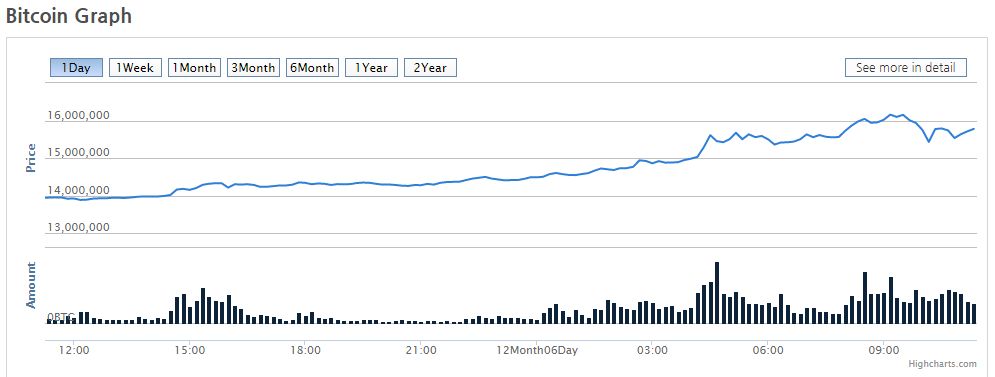 А вот на южно-корейской бирже криптовалют Bithumb биткоин уже несколько дней подряд рос в опережающем ритме. В среду, 29 декабря он здесь преодолел планку в 13 тысяч долларов.