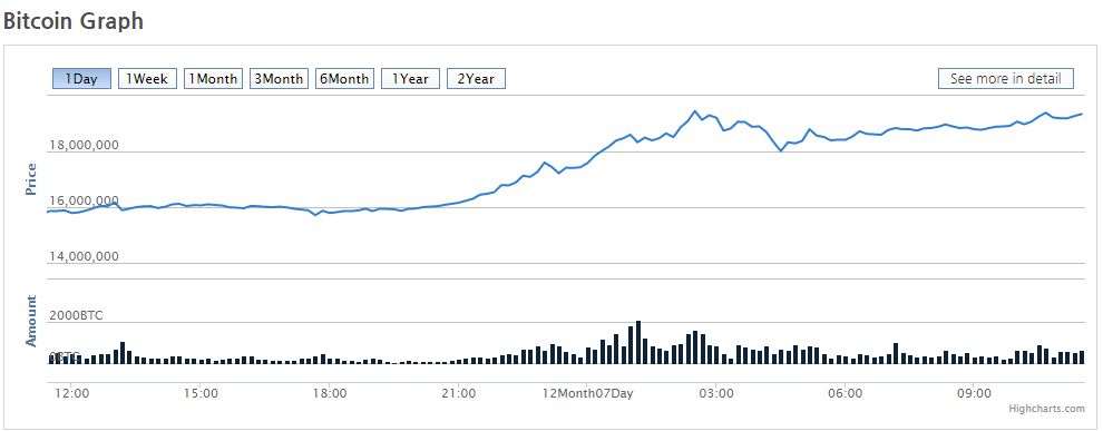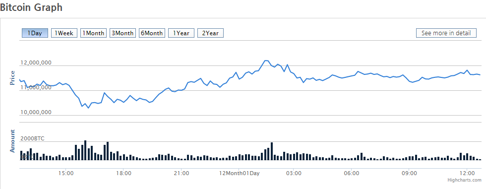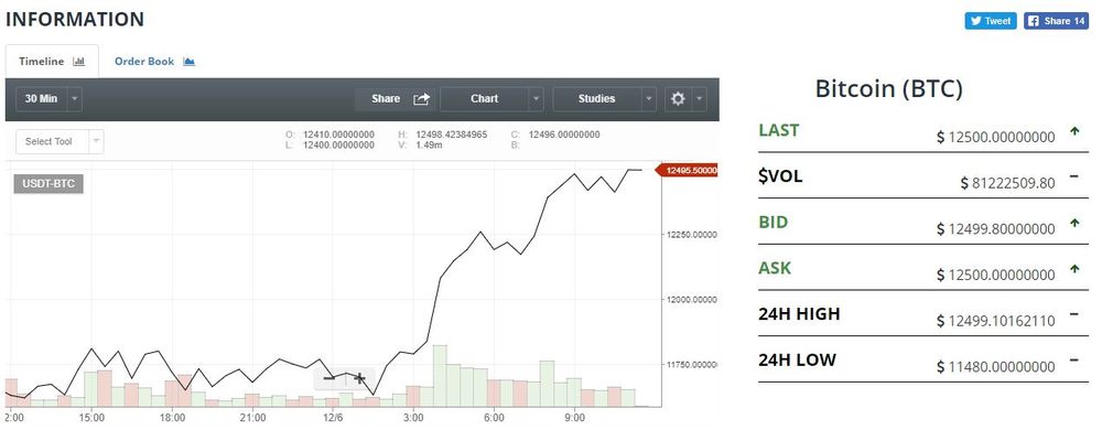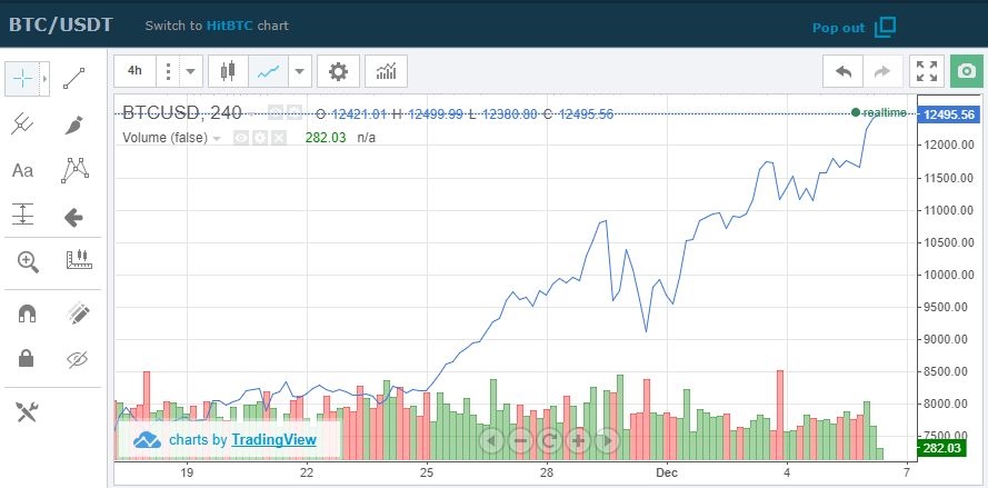 На южно-корейской бирже Bithumb, где традиционно самый высокий курс, биткоин перевалил за 12 тысяч и приближается к 13. Курс на текущий момент - 12 810 долларов.