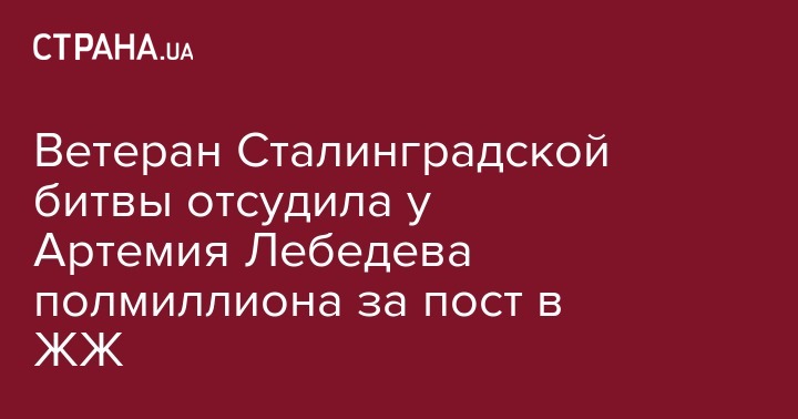Иск подала ветеран Сталинградской битвы Марина Михалицына, сообщает "Интерфакс". Ее заявление было удовлетворено частично, поскольку изначально она поджала иск на 1 млн рублей. Суд также обязал Лебедева удалить порочащие честь и достоинство ветеранов материалы.