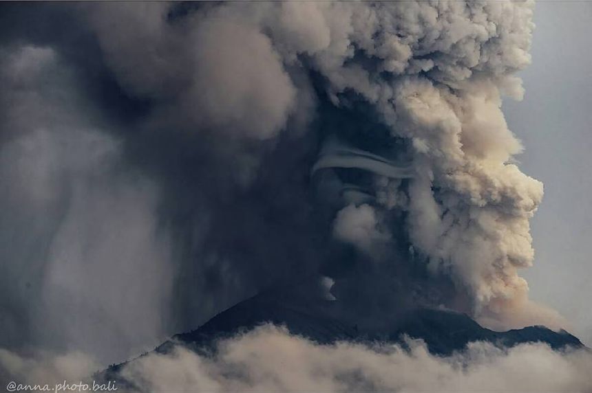 Над верхушкой вулкана видны массивные столбы дыма, которые поднимаются на высоту до 3 км. Гора начала проявлять активность еще на прошлой неделе, и власти опасаются полномасштабного извержения. В понедельник уровень опасности подняли до красного. Люди, живущие поблизости от вулкана, могут быть принудительно эвакуированы. В прошлый раз Агунг извергался в 1963 году.