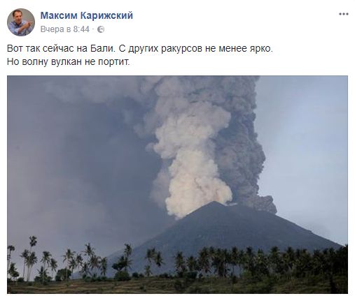 У себя в Facebook украинец поделился фотографией активного вулкана, отметив при этом, что вулкан "не портит волну".