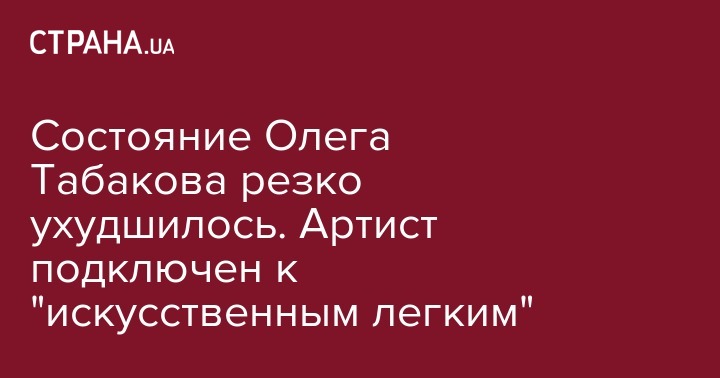 В настоящий момент состояние Олега Табакова резко ухудшилось, врачи оценивают его как крайне тяжелое. Об этом сообщает "Лайф" со ссылкой на "Пятый канал".