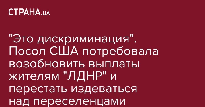 "Это дискриминация". Посол США потребовала возобновить выплаты жителям "ЛДНР" и перестать издеваться над переселенцами
