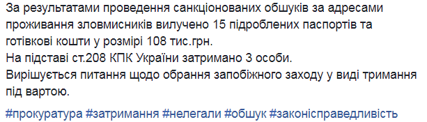 По данным правоохранителей, они изготавливали поддельные паспорта гражданина Украины и организовывали беспрепятственное прохождение пограничного контроля во время пересечения украинской границы. В ходе обысков было изъято 15 поддельных паспортов.