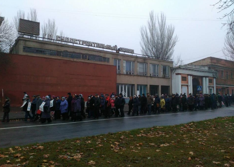 Заводчане рассказали, что акция продлится до 12:00-13:00. После этого протестующие пойдут в Николаевскую ОГА требовать встречи с губернатором Алексеем Савченко.