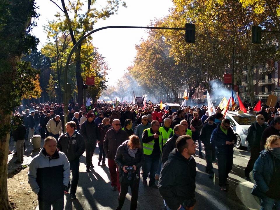 В Мадриде таксисты жгут файеры на многотысячном протесте против Uber. Фото