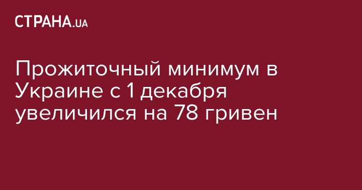 Прожиточный минимум в Украине с 1 декабря увеличился на 78 гривен
