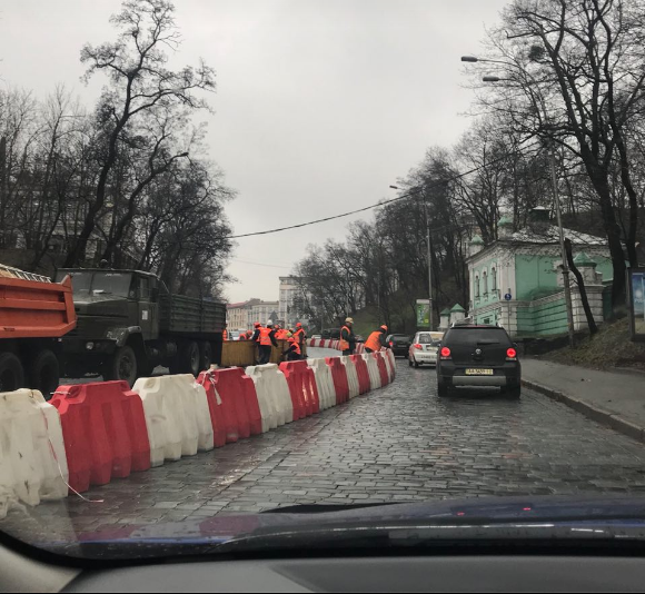 Так, из-за ремонтных работ затор образовался на Владимирском спуске.
