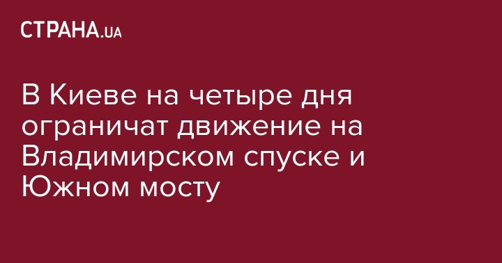 В Киеве на четыре дня ограничат движение на Владимирском спуске и Южном мосту