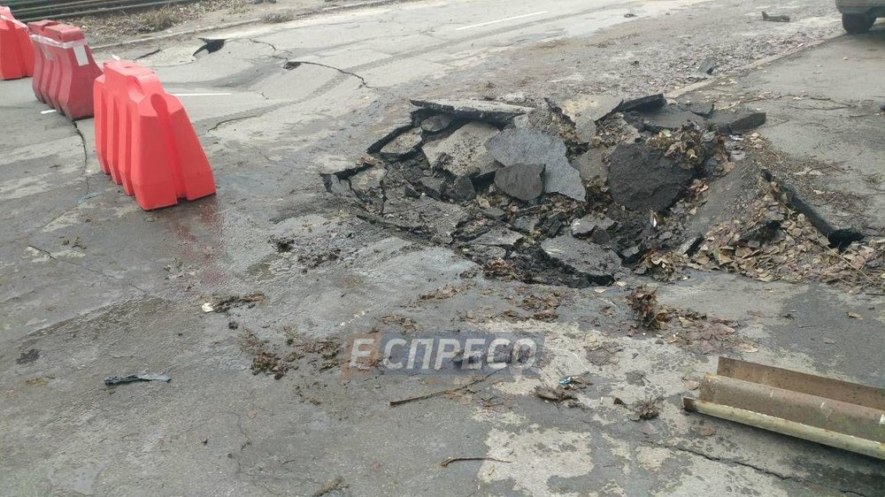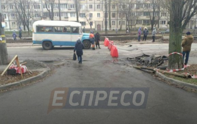 В Киеве просел асфальт у парка Юность, трамваи и авто остановились