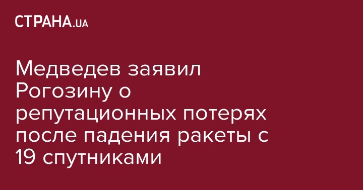 Медведев заявил Рогозину о репутационных потерях после падения ракеты с 19 спутниками