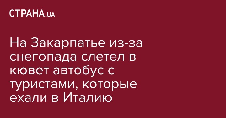 На Закарпатье вчера вечером, 3 декабря, автобус, следовавший по маршруту Одесса - Бари (Италия) с кучей туристов, на заснеженной дороге съехал в кювет. Об этом сообщает ГосЧС.