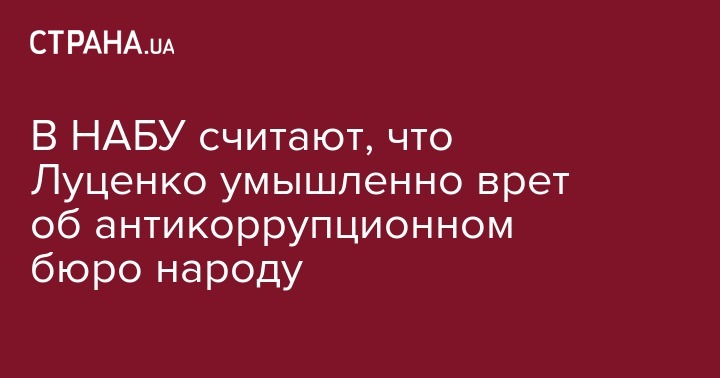 В антикоррупционном бюро считают, что генпрокурор Юрий Луценко сознательно вводит общество в заблуждение, сообщая ложные факты и предлагая "произвольное" трактовки законодательства. Об этом сообщили в пресс-службе НАБУ.