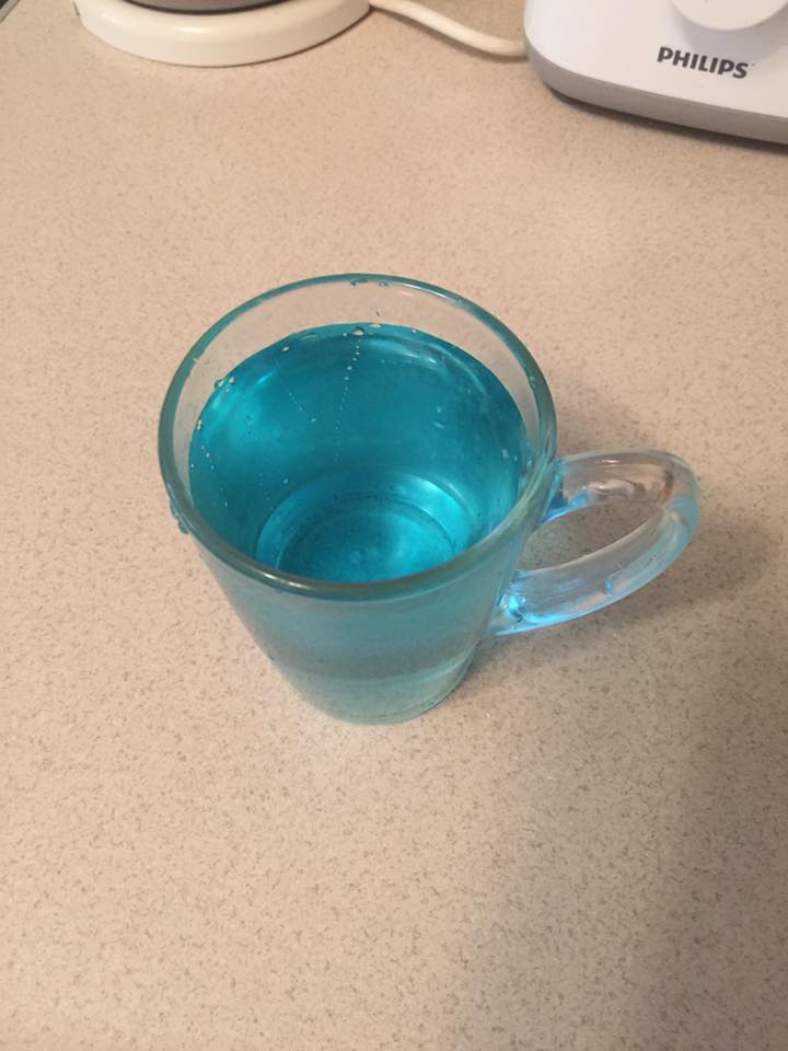 "Синий чай из Таиланда?" У киевлянки из крана потекла ярко-голубая вода. Фото