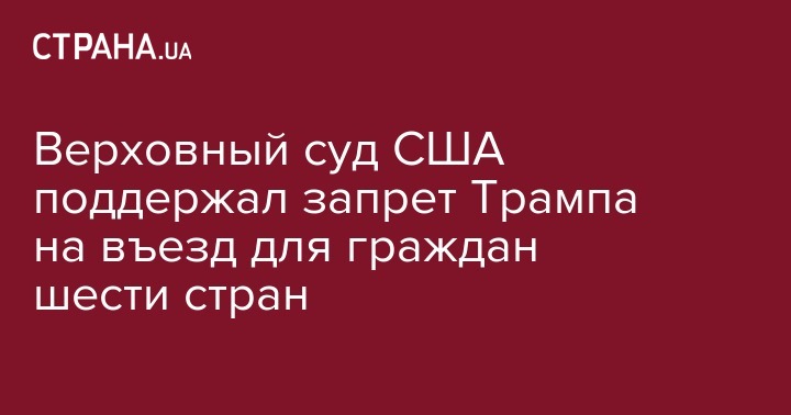 Верховный суд США постановил, что запрет Дональда Трампа на въезд в страну для граждан шести стран с преимущественно мусульманским населением может войти в силу. При этом предложение президента относительно граждан Чада, Ирана, Ливии, Сомали, Сирии и Йемена до сих пор оспаривается в американских судах.
