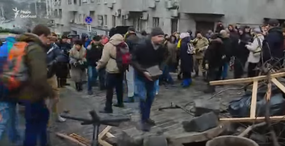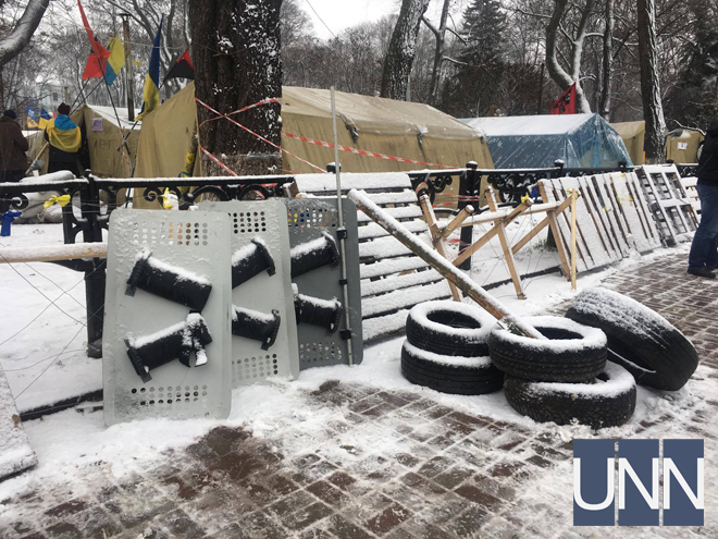 12:04  Активисты наваливают баррикаду. Бросили туда доску и сказали, что "это могильная плита Порошенко".