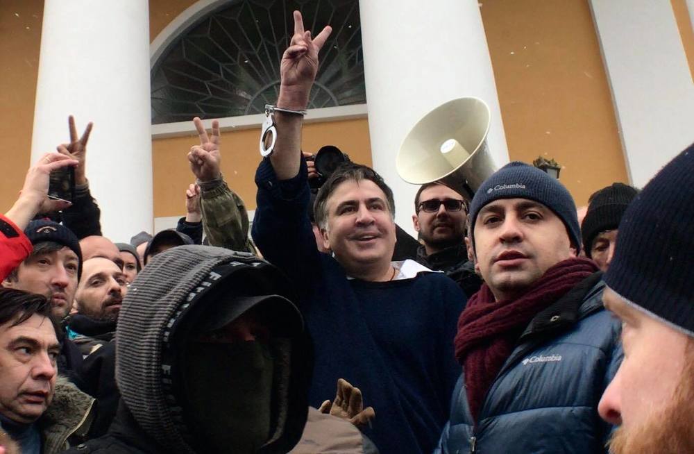 СБУ пыталась вывезти его из квартиры, которую Михо арендовал на улице Костельной. Но прозошел беспрецедентный в истории Украины случай: толпа активистов заблокировала служебное авто, взломала его и освободила Саакашвили.