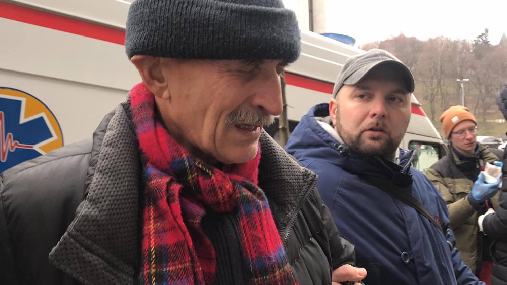 11:24  В карете скорой помощи оказывают помощь одному сотруднику Нацгвардии и одному митингующему, у которого подрезаны пальцы. Только что на моих глазах постращал ещё один активист 70 лет. У него ожог глаз слезоточивым газом. Вот ещё один. Очень много пострадавших.