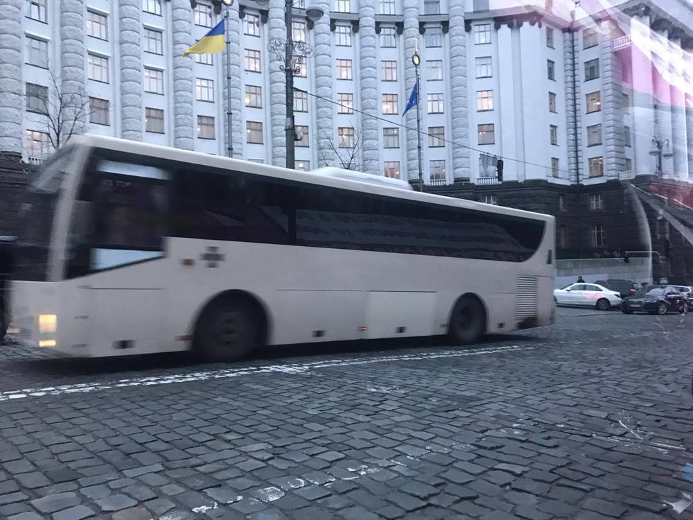 10:44  Бус, внутри которого задержанный Михо, черепашьими темпами движется по центру Киева.