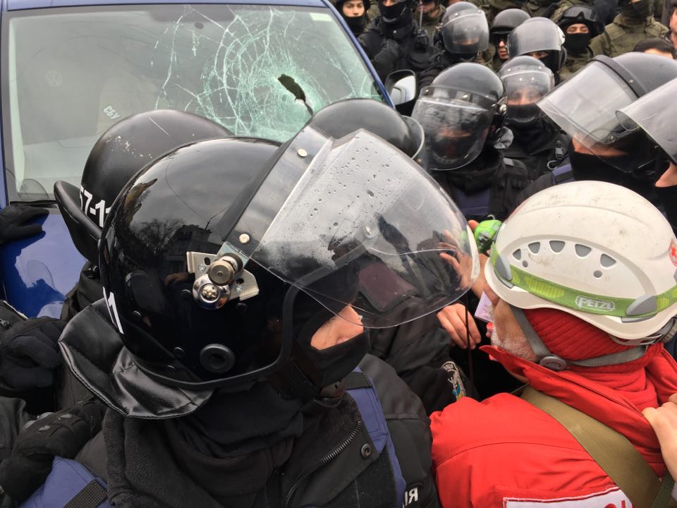 В полиции говорят, что их атаковали протестующие, но никого из участников акции не задерживали.