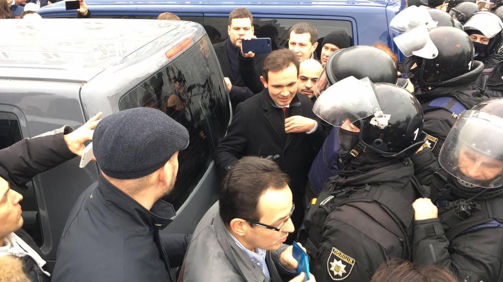 10:00  Саакашвили посадили в машину. Активисты блокируют машину с криками "Миша! Миша!"