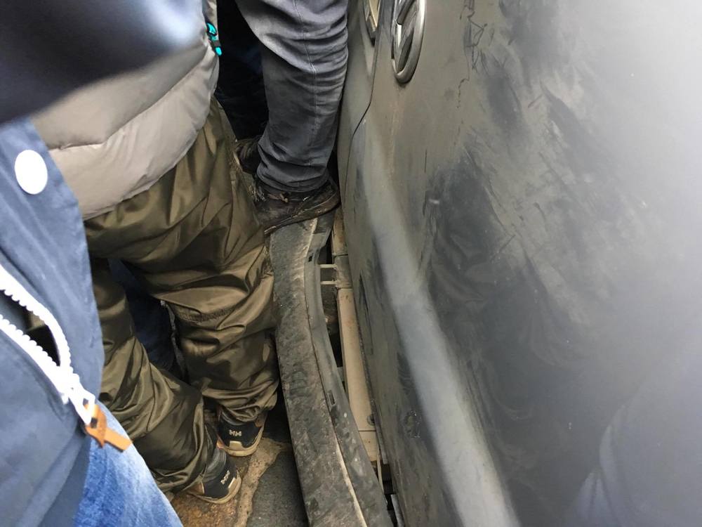11:43  Машина с Михо завелась, несмотря на порезанные колеса.