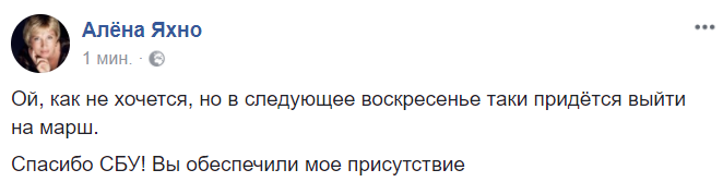 "Спасибо СБУ! Вы обеспечили мое присутствие", - пишет журналистка Алена Яхно.