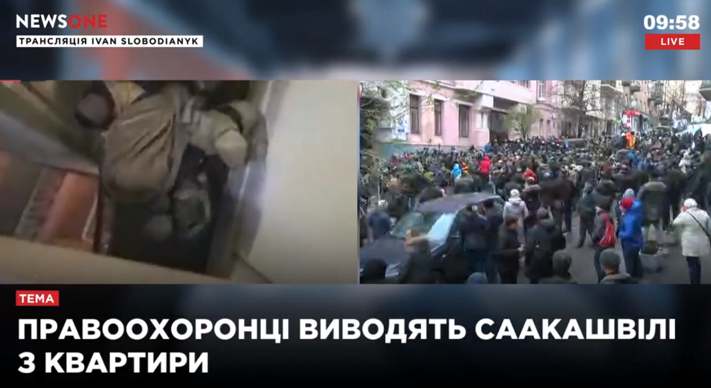 Саакашвили выводят из квартиры и силой сажают в полицейский микроавтобус Фото: NewsOne