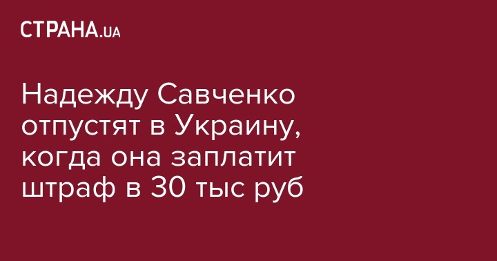 Надежду Савченко отпустят в Украину, когда она заплатит штраф в 30 тыс руб