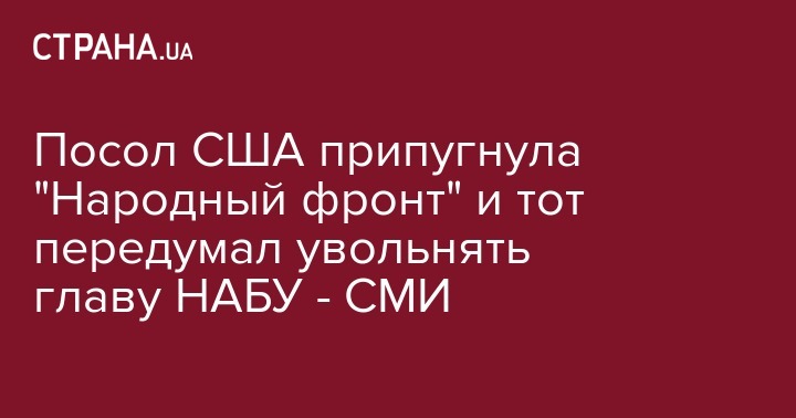Посол США Мари Йованович вчера вечером встретилась с лидерами "Народного фронта" - экс-премьером Арсением Яценюком, главой МВД Арсеном Аваковым и спикером Рады Андреем Парубием касательно закона о "ликвидации НАБУ".