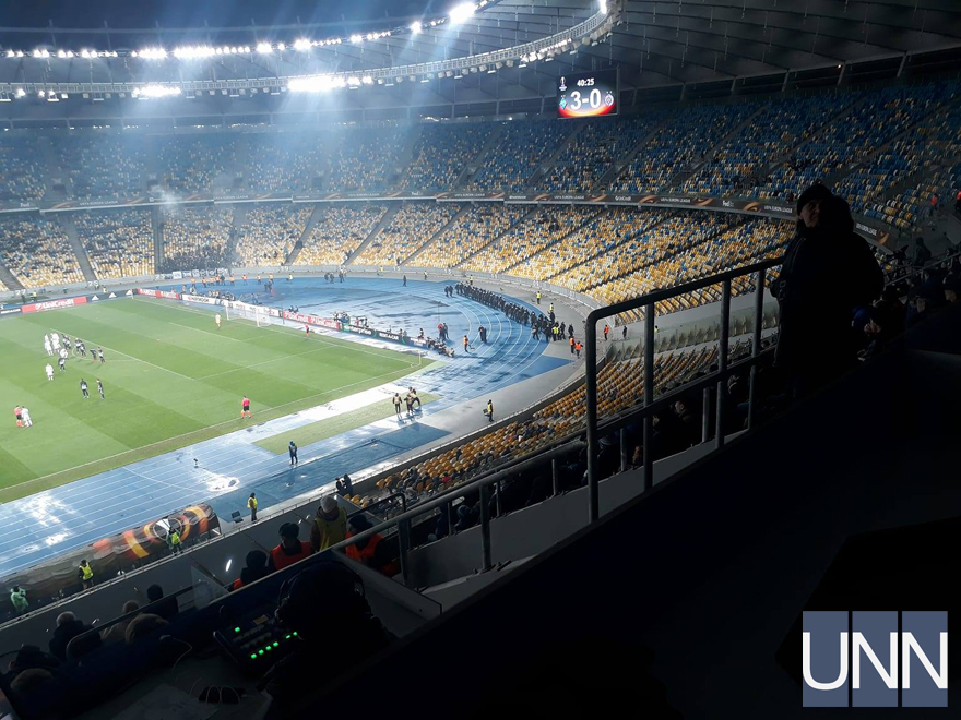 Одна из групп  фанатов "Динамо" в течение первых 30 минут первого тайма матча 6-го тура группового этапа Лиги Европы "Динамо" - "Партизан" активно подрывала запрещенные на стадионе петарды.