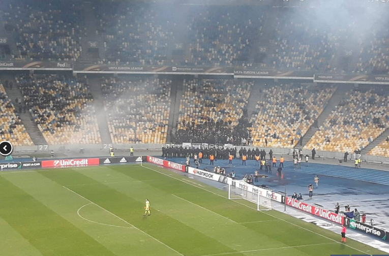 Ультрас "Динамо" во время матча киевлян с "Партизаном" устроили беспорядки, передает  УНН.