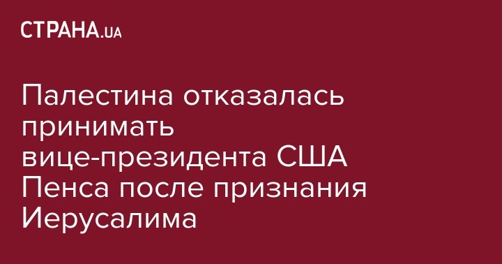 Палестина отказалась принимать вице-президента США Пенса после признания Иерусалима