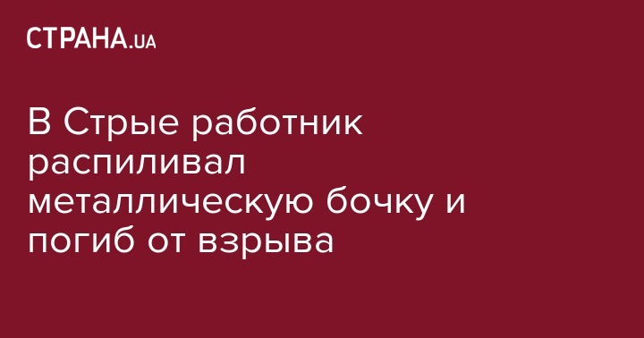 "7 декабря в 15:30 часов в г. Стрый на ГП "Стрыйский вагоноремонтный завод" во время распиливания металлической бочки из-под неизвестного вещества работником предприятия, 1956 года рождения, жителем с. Лановка Стрыйского района, произошел взрыв. Вследствие взрыва работник получил травмы и в крайне тяжелом состоянии был госпитализирован в реанимационное отделение Стрыйской ЦРБ, где в 21:40 часов от полученных травм умер", - говорится в сообщении.