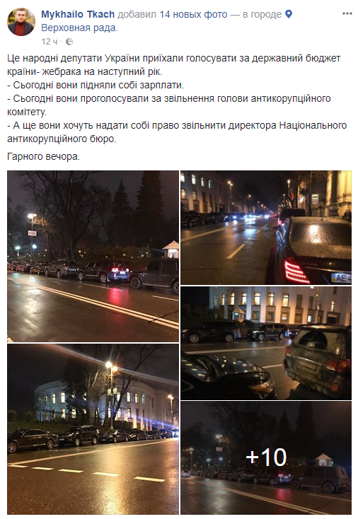 Журналист Михаил Ткач публикует фотографии дорогих автомобилей под Радой и комментирует: