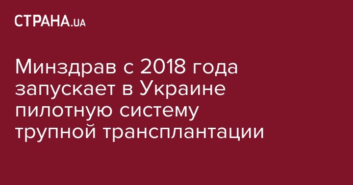 В сентябре 2017 года Министерство здравоохранения Украины поддержало этот законопроект, разработанный парламентским комитетом по вопросам здравоохранения, а также заявило о планах в 2018 году начать пилотный проект по трансплантации почки от неродственного трупного донора, на что в проекте государственного бюджета предусмотрено 112 млн грн.