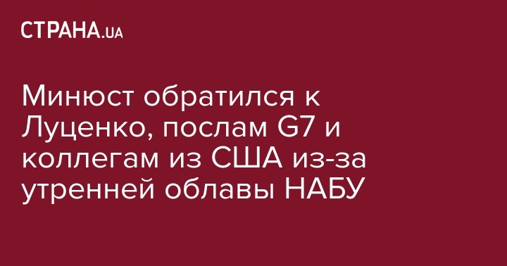 Кроме того, Минюст обратился с заявлением о давлении и нарушении законодательных норм НАБУ к послам стран "Большой семерки" (G7) и Министерству юстиции США.